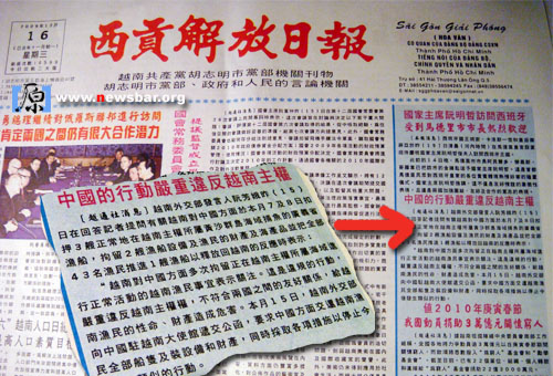 昆明飞往河内的越南航空飞机上,空姐派的是胡志明市的党报,是华语的,居然这样报道西沙和南沙问题。