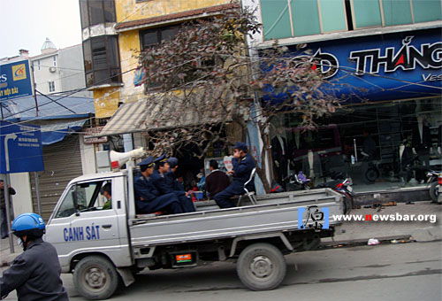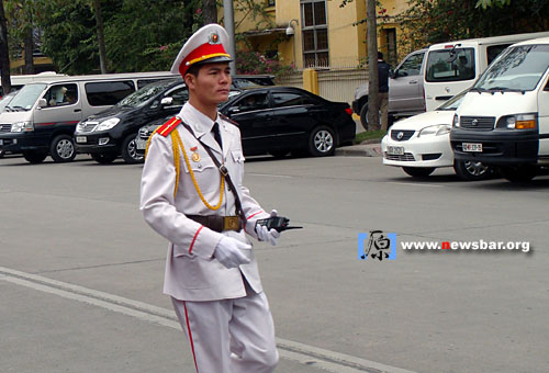 河内的大街上看到这外,有人说是越南的城管,搞不懂,反正有大盖帽的应该是重要人物吧。
