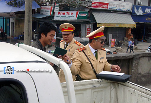 这才是交警,穿得很像我们的城管,这是在罚款,跟(过去的)中国一样,司机用手机拨通了熟人的电话,交警听完以后决定罚不罚与罚多少。