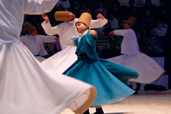 Posted: 15 Mar 2011 05:38 AM PDT 编:莫莫 ![]() 在一个位于海拔1100米处、山峦迭起的盆地中央, 有一座名为"以哥念(Iconium)"的小城,据说它是史前大洪水过后人类所建立起来的第一座城市。如今,这座城市被称作"孔亚(Konya)",是土耳其最古老的城市之一。 属于孔亚的一天 作为一座圣城,孔亚于公元12世纪时被土耳其塞尔柱王朝(Seljuk Turks)选作首都,如今那里竖立着许多由塞尔柱人留下的遗迹,当然也有不少外来入侵者的"杰作",其中包括罗马人、阿拉伯人和十字军。此外,孔亚城中还隐藏着不少清真寺和博物馆。位于山巅的阿拉丁清真寺是该地区最古老的建筑之一,而孔亚城中的主要道路也用这座清真寺来命名。 事实上,孔亚是一座非常适合闲逛的小城。清晨,我 们从考古博物馆或卡拉塔学院(Medersa Karatay,目前被改建成了一座陶瓷博物馆)出发,然后在阳光灿烂的小巷间漫步,接着在街角古董店的橱窗里发现许多以手织机编织的地毯、传统的工艺品以及许多具有纪念价值的小玩 意。那些做工精美的托钵僧雕像、色彩绚烂的提灯能把人带往一个遥远的古老年代。 从阿拉丁清真寺到梅夫拉那大道(Mevlana Caddesi,位于梅夫拉那博物馆外的道路),该区域构成 了孔亚城的中心,这里竖立着一座顶部覆有绿色陶瓷的高塔,塔上还有一个灰色的炮台。在正方形的庭院内有一个华美的喷泉和一座高大的楼房,楼内安置着不少卧室和客厅。当年,情同手足的孔亚托钵僧曾在这里生活。脱下鞋子,我们穿过厚重的镀银雕花大门,进入了一片墓园,那 里安葬着神秘的苏菲派诗人哲拉鲁丁·卢米(梅夫那拉)及其家庭成员和信徒。 ![]() 诗人与他值得纪念的创造 1207年,哲拉鲁丁·卢米出生于大夏(今属阿富汗),其父巴哈乌丁是花刺子模汗国治下呼罗珊的伊斯兰教学者和教师,被人尊称为"学者中的苏丹"。哲拉鲁丁·卢米年幼时曾向多位老师学习神学。后来,他遇到了一位天性叛逆的贤人——大不里士的沙姆士(Shams of Tabriz),这样的经历激发了哲拉鲁丁·卢米的创作灵感,从此以后,他写下了许多优美的诗篇。 不过,提起哲拉鲁丁·卢米,最出名的还是"托钵僧旋转舞创造者"这个身份。坊间至今还流传着这样一个传说:一天,哲拉鲁丁·卢米在孔亚的市场中散步,断断续续的打铁声显示出鲜明的节奏,于是他开始旋转,速度越来越快,最后进入了一种忘我的状态。通过舞蹈,哲拉鲁丁·卢米发现了一种存在于人神之间的联系。1273年12月17日,这位杰出的苏菲派神秘主义者与世长辞。 如今,埋葬圣人的墓地成为了信徒们心目中的圣地,这里保存着亡人们的衣物、手稿、乐器、用具和珍贵的毡毯。通过这些物件,这片小小的墓地和一块块墓碑被联系在了一起。 苏菲活动中心(Tekke)是一幢宏伟的当代建筑,从孔亚市中心只要步行10分钟就可以到达这里。苏菲活动中心拥有一个八边形的屋顶、一个白色的大理石大厅以及众多向公众开放的楼层。此外,这里还有一座圆形的浅色木质舞台。每年12月,这里都会上演传统的土耳其托钵僧旋转舞。 优雅的托钵僧旋转舞既是一种舞蹈,也是一场仪式,确切地说,它是一次神秘的旅行。通过这样的旅行,舞者能够完成与神灵交流的任务。起初,这场仪式由乐师的演奏来引入,他们坐在舞台后面弹奏二弦雷贝琴、坦布拉琴和曼陀林,还有的乐师负责敲击达夫鼓(daf)或吹奏著名的芦笛 (Ney),据说后者是圣人的象征。 ![]() 信仰永不远离 12月17日是哲拉鲁丁·卢米的逝世纪念日。此刻,苏菲活动中心圆形舞台的四周排列着几层观众席。舞台中央,一个身着黑衣、头戴绿色头巾的瘦小男子坐在一块礼拜垫上。在一个红色的光环中,教长开始念经。9名男子走上舞台,围成一个半圆,服装包括一件黑色的羊毛长外套(suf,这个词语源自"苏菲派")、一件白色长袍(暗含"将自私层层包裹"的意思)以及一顶高高的帽子。 向教长致意之后,舞者从教长面前走过,然后组成一个新的托钵僧团队。他们按照一种规律的步伐沿着舞台绕行3周。当每一位新舞者都向教长打过招呼之后, 第一名托钵僧开始旋转身体。他将双手向上升起,指向天堂所在的位置,然后用右掌握住从神灵那里得到的超自然力量,而左掌则转向地面,继而指向下一个人——后一名舞者被认为是尚未成熟的人,这场舞蹈正是要引领人们走向成熟。 ![]() 托钵僧们在舞台上不停地转动,感觉就像是一颗颗行星。他们紧闭着双眼, 脑袋斜靠在肩上,显露出一种如痴如狂的表情。此刻的舞台就像一个花圃,裙子在重力的作用下像花冠一样慢慢绽放。舞者的一个脚在帮助转动,而另一个脚则保持静止。他们不停地转啊转啊。从右至左,在移动方位的同时还要保持自转:有些人慢慢地朝舞台中心转去,另一些人则在舞台的边缘移动。目光专注的教长挺直了身体,在舞者之间穿行。 旋转舞的舞者在完成了一次上行之旅之后,又会找回自己那卑微的侍者身份——托钵僧会以一个双手交叉抱肩的姿势来向观众致意。 ![]() 托钵僧旋转舞祈祷仪式将在吟诵《古兰经》的歌声中进入尾声,此后礼拜者的内心都会迎来祥和与平静。完成这场精神之旅的人就步入了成熟的阶段:从此, 他将有权利去爱,同时也要为所有的人服务,无论他人的信仰、社会等级和家庭背景。这是一堂关于爱和宽容的课程,梅夫拉那教团用一种特殊的方法提醒着我们。 就这样,纪念典礼落下了帷幕。寒冷的空中,狂